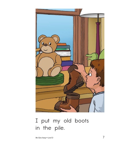 I put my old boots I put my old hat in the pile. in the pile. We Give Away • Level D 7 8