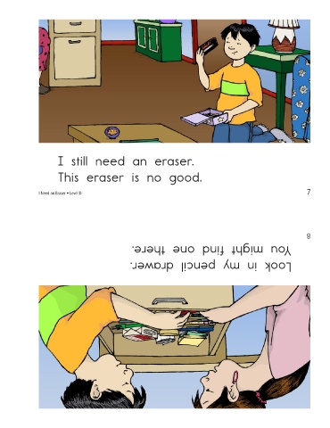 I still need an eraser. This eraser is no good. I Need an Eraser • Level D You might find one there. Look in my pencil drawer. 7 8