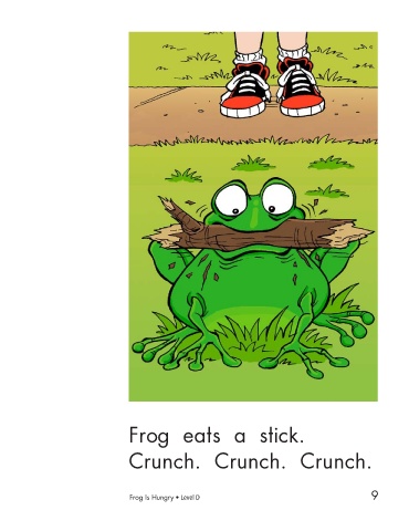 “ Flowers are not frog food,” says Frog. Frog eats a stick. “ Sticks are not frog food,” Crunch. Crunch. Crunch. says Frog. 9 10 Frog Is Hungry • Level D