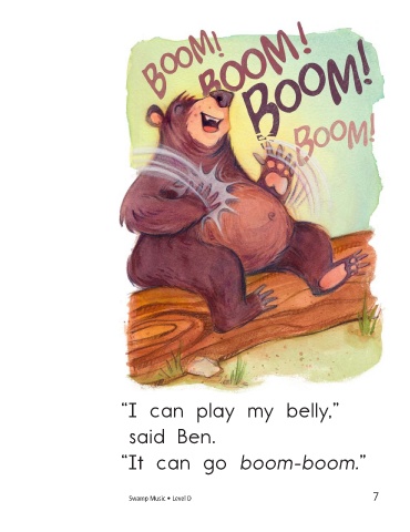 “I can play my belly,” “I can play my legs,” said Ben. said Gabby. “It can go boom-boom.” “They can zing-zing-zing.” Swamp Music • Level D 7 8