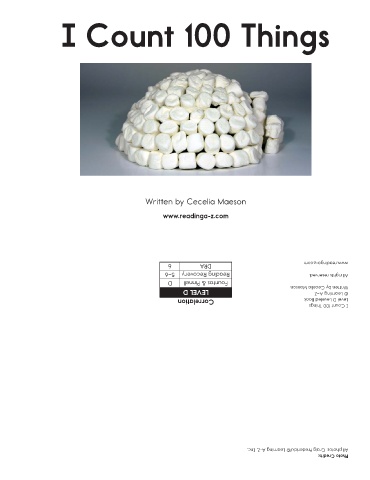 www.readinga-z.com Fountas & Pinnell Reading Recovery www.readinga-z.com All rights reserved. Written by Cecelia Maeson © Learning A–Z Level D Leveled Book I Count 100 Things All photos: Craig Frederick/© Learning A-Z, Inc. Photo Credits: