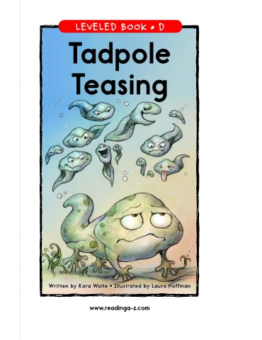 Tadpole Teasing LEVELED BOOK • D Tadpole A Reading A–Z Level D Leveled Book Word Count: 80 Teasing Written by Kara Waite • Illustrated by Laura Hoffman Visit www.readinga-z.com www.readinga-z.com for thousands of books and materials.