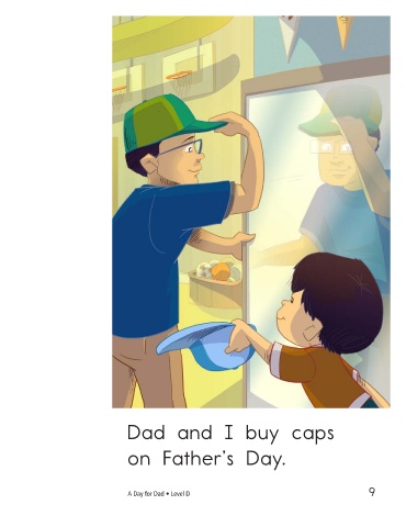 Dad and I buy caps Dad and I take naps on Father’s Day. on Father’s Day. A Day for Dad • Level D 9 10
