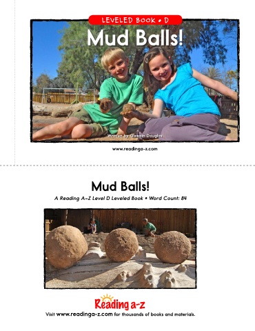 LEVELED BOOK • D Mud Balls! Written by Gawain Douglas www.readinga-z.com Mud Balls! A Reading A–Z Level D Leveled Book • Word Count: 84 Visit www.readinga-z.com for thousands of books and materials.