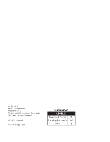 Written by Keith and Sarah Kortemartin Level D Leveled Book Correlation