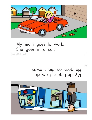 My mom goes to work. She goes in a car. 5 Getting Around the City • Level D He goes on the subway. My dad goes to work. 6