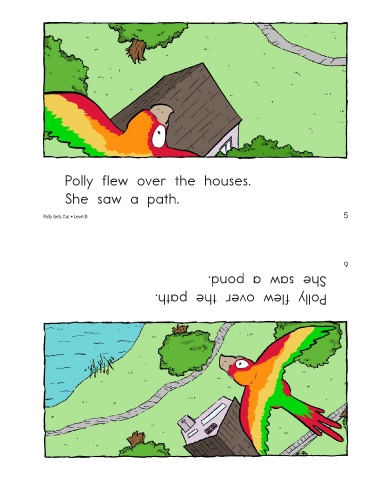 Polly flew over the houses. She saw a path. Polly Gets Out • Level D She saw a pond. Polly flew over the path. 5 6