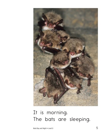 It is morning. It is afternoon. The bats are sleeping. The bats are waking up. Bats Day and Night • Level D 5 6