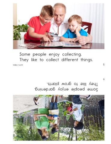Some people enjoy collecting. They like to collect different things. Hobbies • Level D They like to grow plants. Some people enjoy gardening. 5 6
