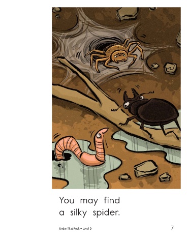 You may find You may find a silky spider. a slow snail. Under That Rock • Level D 7 8