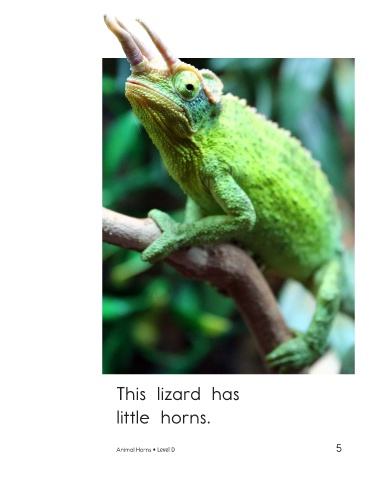 This lizard has This bull has little horns. long horns. Animal Horns • Level D 5 6