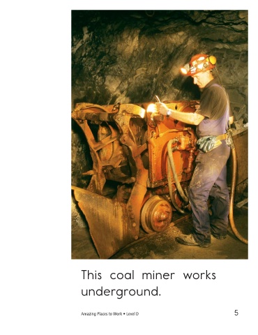 This coal miner works This ranger works underground. in forests. Amazing Places to Work • Level D 5 6
