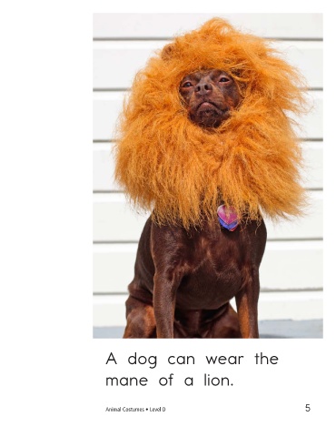 A dog can wear the A goat can wear the mane of a lion. crown of a princess. Animal Costumes • Level D 5 6