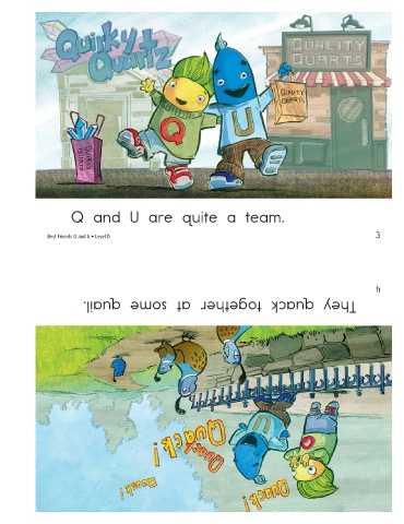 Q and U are quite a team. Best Friends Q and U • Level D They quack together at some quail. 3 4
