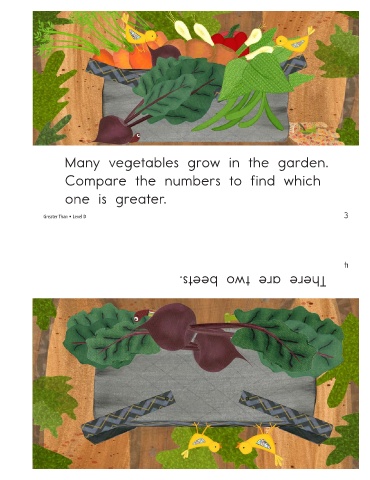 Many vegetables grow in the garden. Compare the numbers to find which one is greater. Greater Than • Level D There are two beets. 3 4