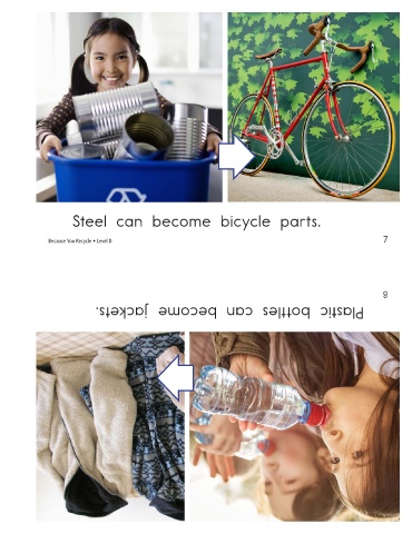 Steel can become bicycle parts. Because You Recycle • Level D Plastic bottles can become jackets. 7 8
