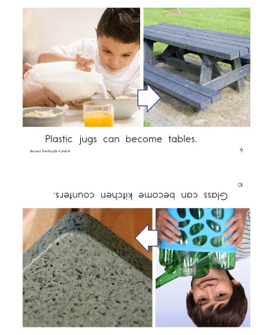 Plastic jugs can become tables. Because You Recycle • Level D Glass can become kitchen counters. 9 10