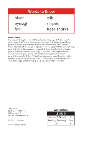 What makes the tiger shark an © Learning A–Z Fountas & Pinnell D