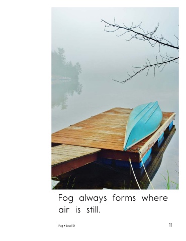 Fog always forms where Fog always makes air is still. it hard to see. Fog • Level D 11 12