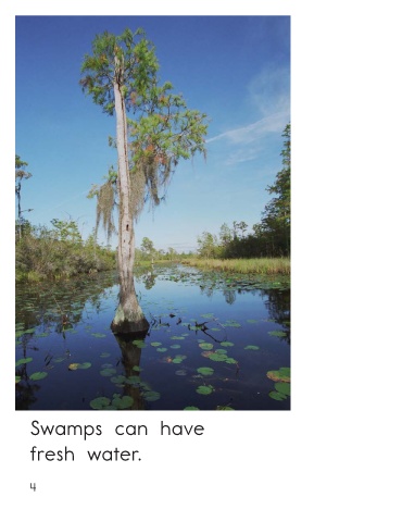 Swamps are areas Swamps can have of wet and dry land. fresh water. Swamps • Level D 3 4