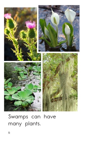 Swamps can have Swamps can have salt water. many plants. Swamps • Level D 5 6