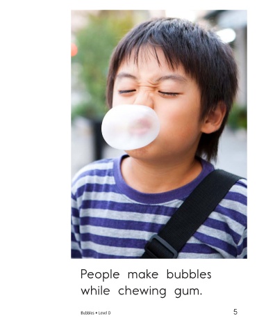People make bubbles People make bubbles while chewing gum. in milk. Bubbles • Level D 5 6