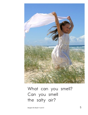 What can you smell? What can you hear? Can you smell Can you hear the salty air? the crashing waves? Imagine the Beach • Level D 5 6