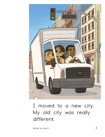 I moved to a new city. My old city was really different. I used to live high up. My New City • Level D 3 4