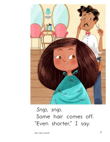 “Even shorter,” I say.                                                                       “Shorter than that,” I say.