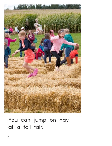 You can pick pumpkins You can jump on hay at a fall fair. at a fall fair. At a Fall Fair • Level D 5 6