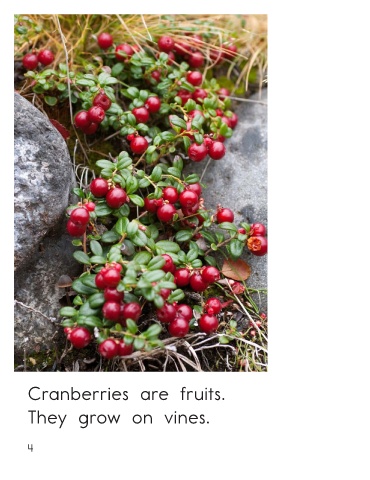 Cranberries are fruits. Cranberries are fruits. They grow in bogs. They grow on vines. Cranberries • Level D 3 4