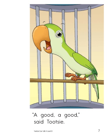 “A good, a good,” said Tootsie. Joe said, “Make it sweet!” Tootsie Can Talk • Level D 7 8