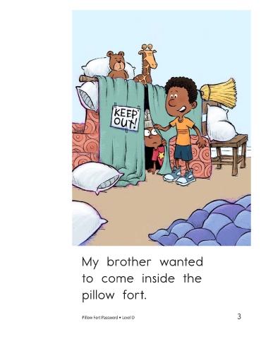 My brother wanted to come inside the He did not know pillow fort. the password. Pillow Fort Password • Level D 3 4
