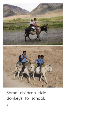 Some children ride Some children ride buses to school. donkeys to school. How We Get to School • Level D Benchmark 7 8
