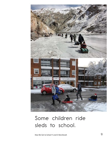 Some children ride Some children ride sleds to school. trains to school. How We Get to School • Level D Benchmark 9 10