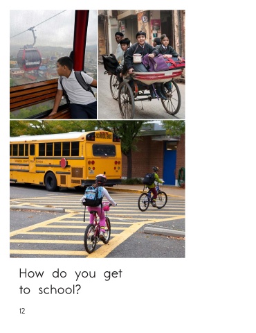 Some children climb How do you get ladders to school. to school? How We Get to School • Level D Benchmark 11 12