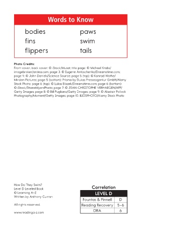How do animals swim? All rights reserved. Reading Recovery 5–6