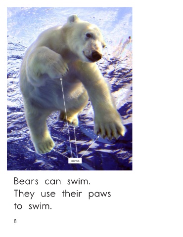 feet tail feet paws Otters can swim. Bears can swim. They use their feet They use their paws and tails to swim. to swim. How Do They Swim? • Level D 7 8