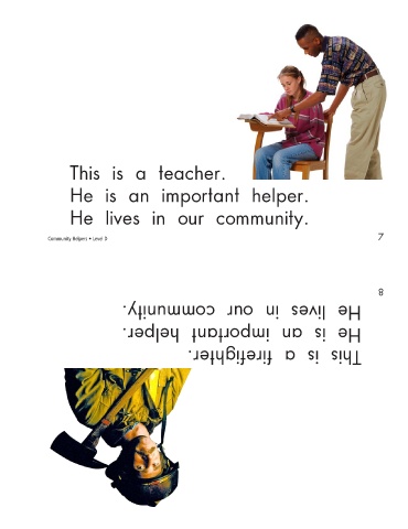 This is a teacher. He is an important helper. He lives in our community. 7 Community Helpers • Level D He lives in our community. He is an important helper. This is a firefighter. 8