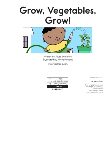 www.readinga-z.com Fountas & Pinnell Reading Recovery www.readinga-z.com All rights reserved. Illustrated by Michelle Berg Written by Alyse Sweeney © Learning A–Z Level D Leveled Book Grow, Vegetables, Grow!